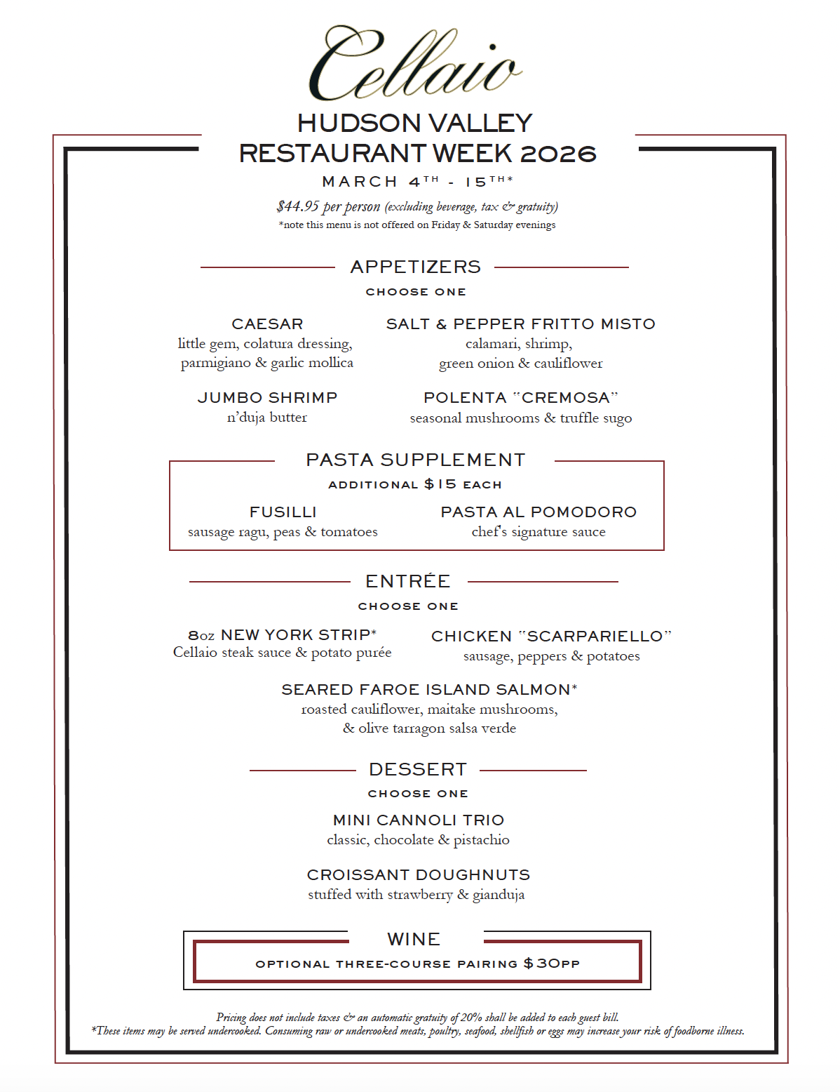 (Daily Additions will not be available during Restaurant Week)